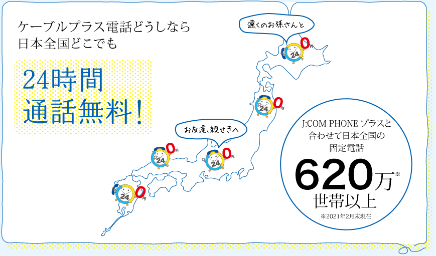 日本全国のケーブルプラス電話どうしの通話が対象です。